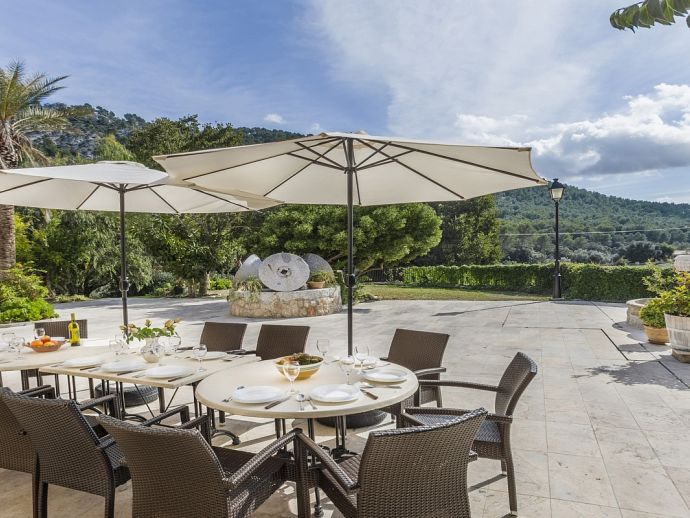 Set in a beautiful rural area with views of the mountains yet within easy reach (15 minute drive) of the ancient town of Pollensa with its attractive narrow streets, shops, an impressive main square lined with cafés, restaurants and bars and places of historical interest to visit. Also nearby is Port de Pollensa which was once a simple fishing port, now it remains very attractive and one of the most popular resorts on the island. The picturesque town is full of Mallorcan charm and is home to long stretches of golden sand, a delightful promenade lined by pine and palm trees with a splendid array of cafes and restaurants and a chic marina. There is also an excellent choice of water sports on offer. Cala San Vicente is a beautiful secluded resort village with a splendid beach and three small hidden bays enclosed by the imposing backdrop of the Tramuntana Mountains. These three bays provide fine sand and pebble beaches and the crystal clear waters provide a great place for snorkelling and canoeing.