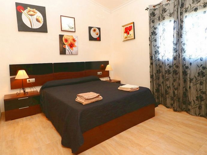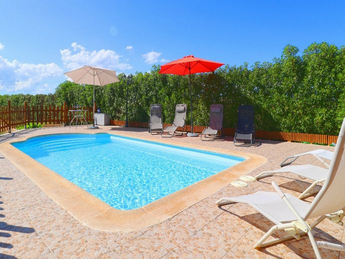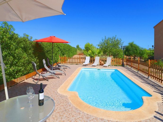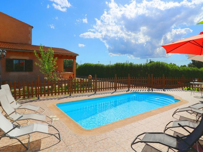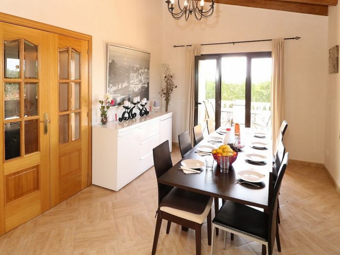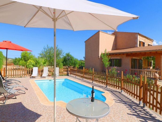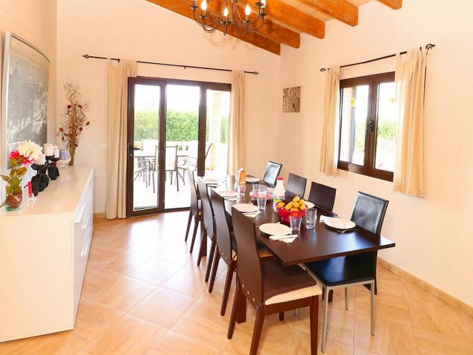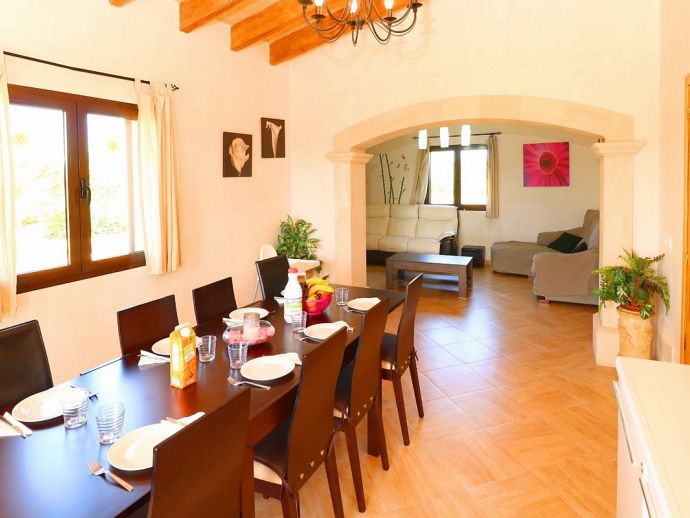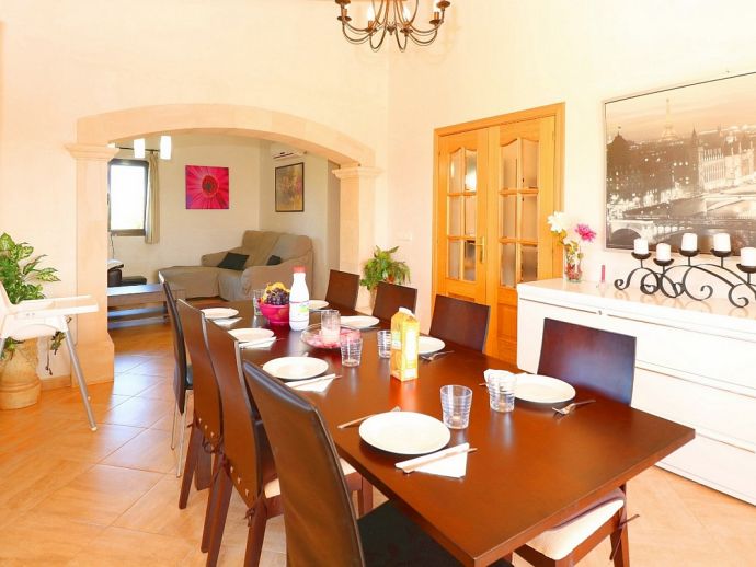 Can Esperanza is perfectly located for exploring some of the best beaches on the island, positioned in a peaceful area in the countryside and just 8 minutes drive from the pretty rural town of Campos, with plenty of restaurants, shops and a twice weekly market. The interior is spacious and light with modern furnishings and amenities, A/C (living area), WiFi, Satellite TV, 40" Home Cinema and DVD/CD player are all provided and heating is also available as an optional extra. The property sleeps 8, with 4 bedrooms, 2 bathrooms, entrance hall with staircase, the comfortable living room is separated by a stone archway leading to the dining area which opens out directly to a terrace. The kitchen is fully fitted with modern units, built-in appliances and a dining set. Outside the private swimming pool is fenced and sun loungers and umbrellas are supplied, there is also another covered area with a stone built barbecue and dining furniture for enjoying meals al fresco.