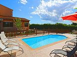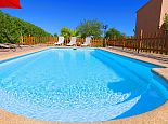 Private swimming pool (7.5 x 3.5 meters - Depth 1.8 to 1.2 m) with sun loungers and umbrellas .
