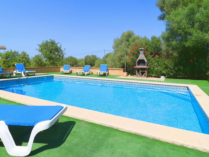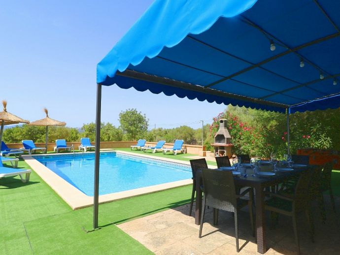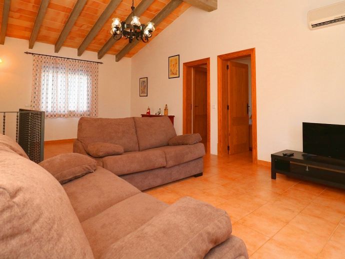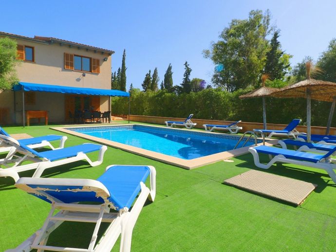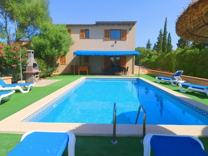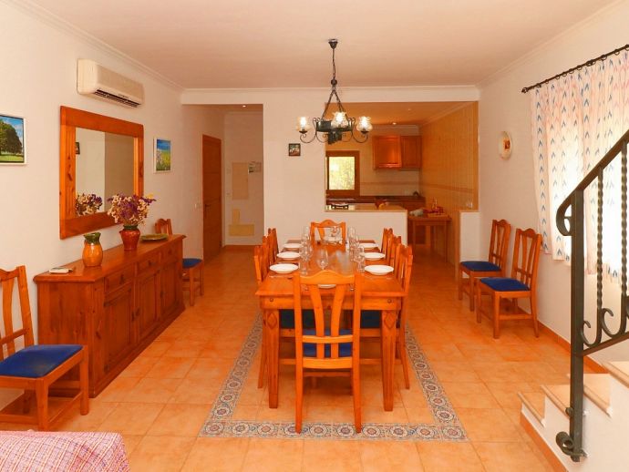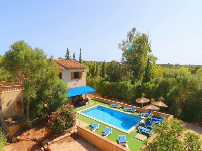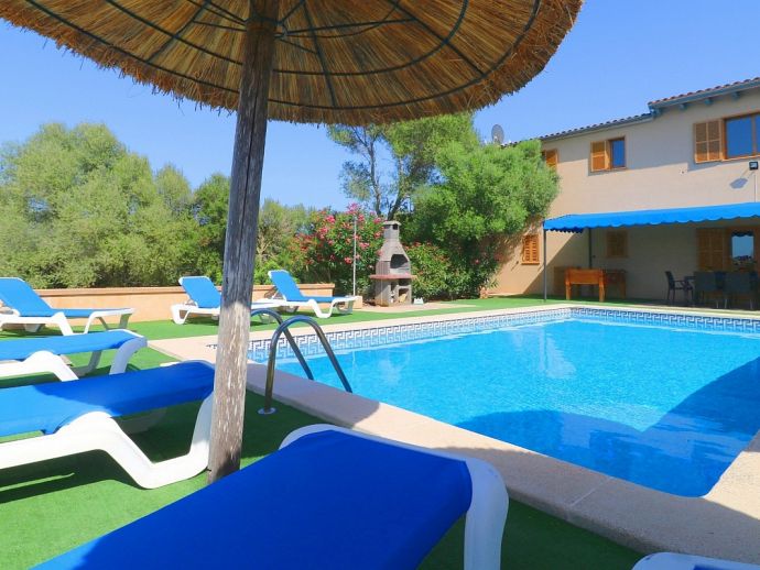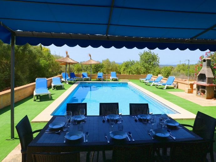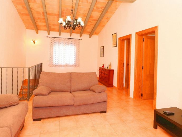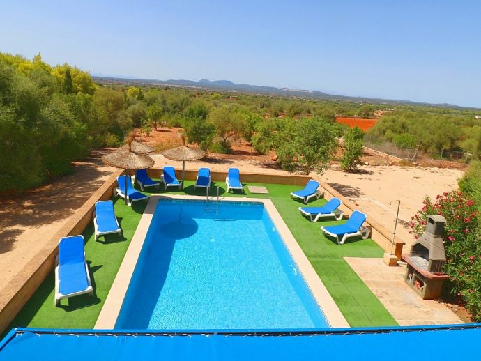 Casa Martin is situated in a peaceful family friendly area and ideal for those looking for a countryside retreat but within easy reach of amenities and fantastic beaches. The villa is laid out over 2 floors and sleeps 7, with 4 bedrooms, 3 bathrooms, an open kitchen, dining and living area, there is a second living space on the first floor with TV and 2 large sofas/beds that can be used for extra guests. It is fully equipped with modern appliances and air-conditioning (all rooms), heating, satellite TV and Wi-Fi are all provided. Sitting on a plot of 10,000 m², there is plenty of space with views to the surrounding countryside, the private pool measures 9 x 5 meters with an outdoor shower and sun loungers to relax on. There is also a traditional brick built barbecue and a pleasant covered terrace for enjoying grilled meals together with family/friends. With fantastic beaches, natural coves, authentic towns and villages just a short drive away Casa Martin provides a great holiday destination for exploring the south of Mallorca.