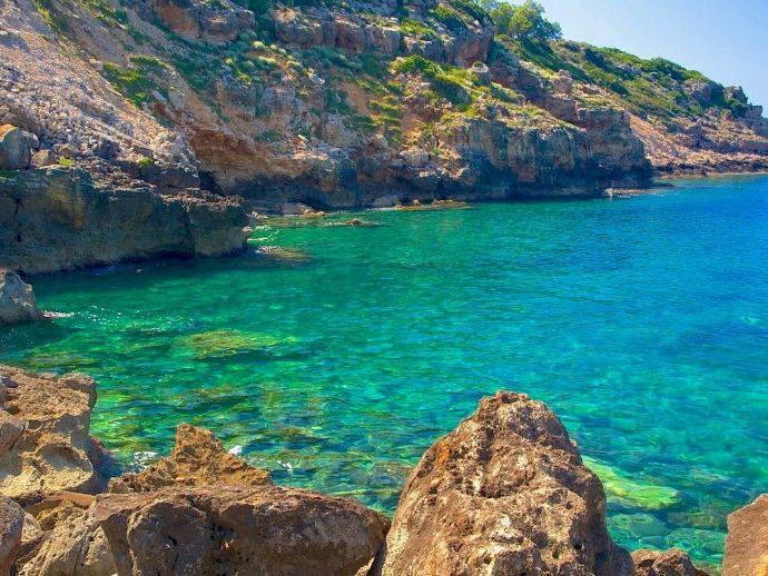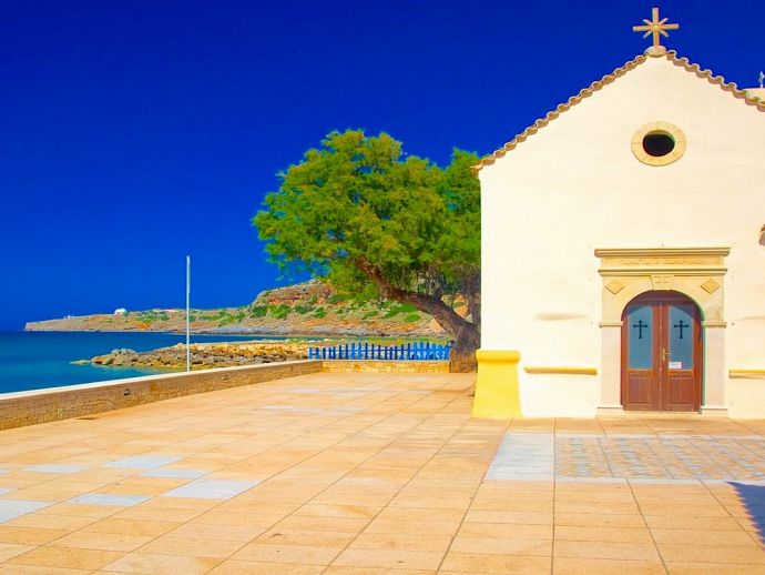 Just 5 km west, the bridge over Petres river marks the beginning of one of Crete's most beautiful sandy dream beaches. It spreads over a distance of 11 km along the Almirou Bay via Kavros to Georgioupolis with good facilities and all kinds of water sports and a dive centre.