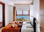 The fourth bedroom of this deluxe Villa, as well as a room with a steam bath cabin are amazingly positioned and found literally underneath the swimming pool. On the ceiling of both rooms, one feels as if they are in their own private water world, as the large port holes in the ceiling are in actual fact the ground of the swimming pool.