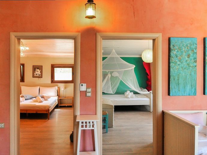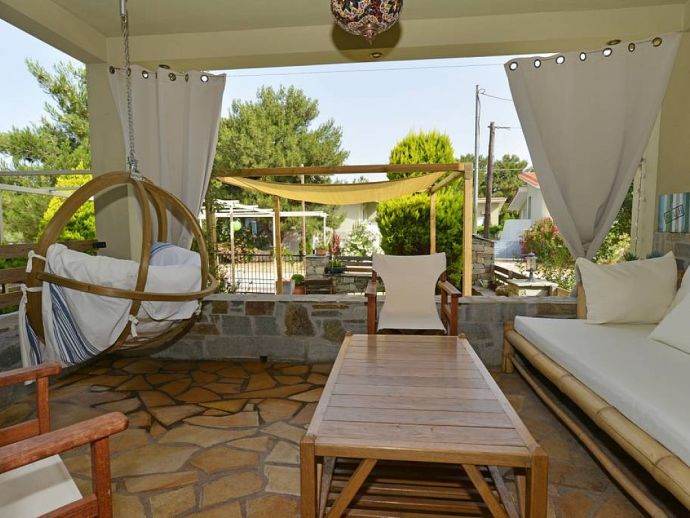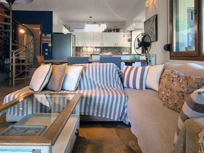 Villa Mela is a lovely 2 level house, built 30 meters by the seaside, with a background of pine and olive trees and views to an amazing sunset. Access from the main road is very easy, but noise is something you will forget completely, once you get there and start enjoying nature. The relaxing sound of the sea, the smell of pine and olive trees, compose the ideal scenery for the a dream vacation.