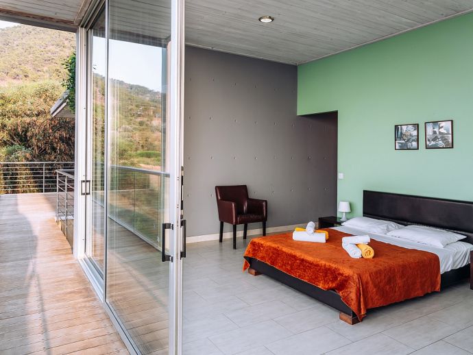 The villa was beautiful and very close to what is shown in the pictures. You don't see the small but well-equipped kitchen, and there are stains between the double-glass window panes that obstruct the view, but it's such a big and amazing view, it wasn't such a big deal.