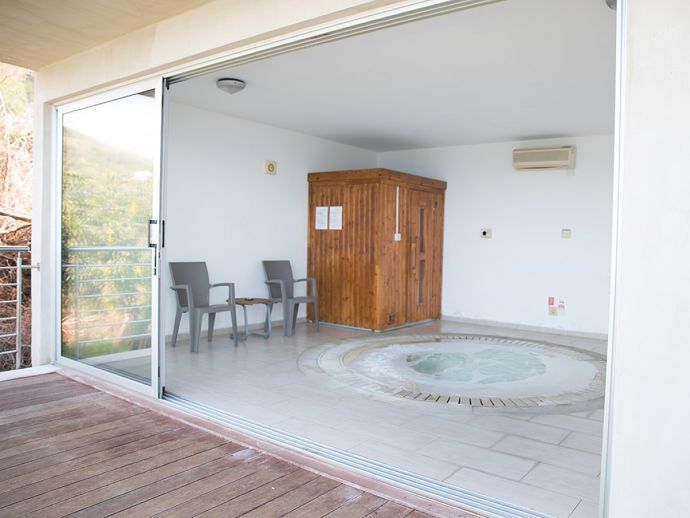 Jacuzzi/heated (with hydro massage) and sauna room.
