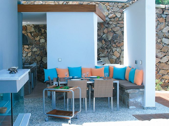 Outside dining area with table/chairs and built-in barbecue facilities.