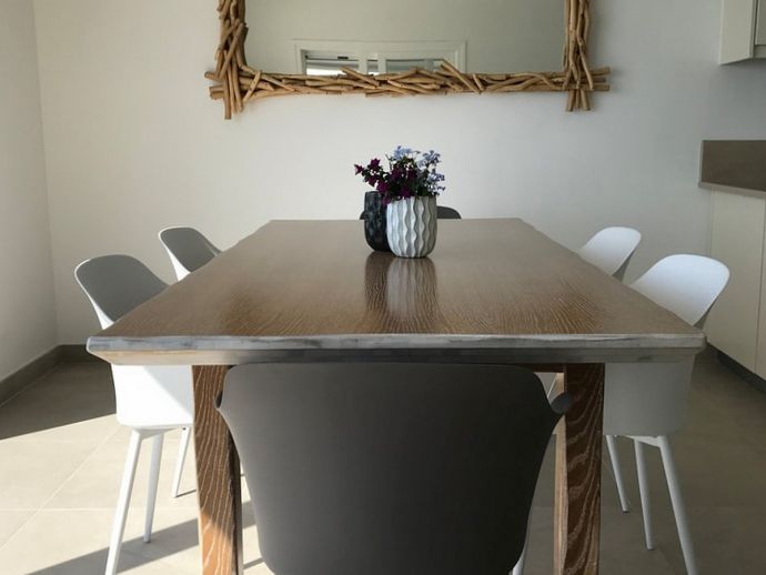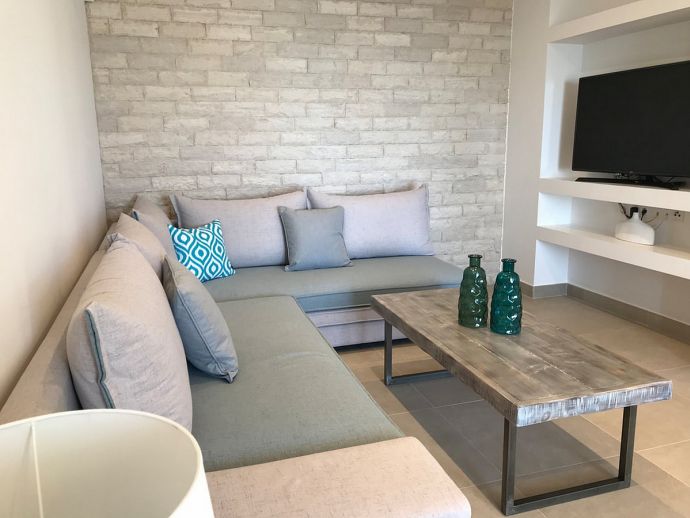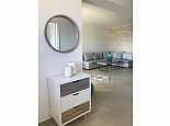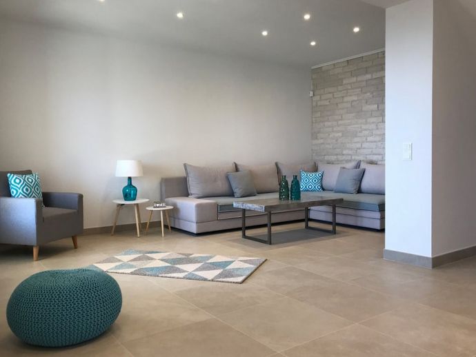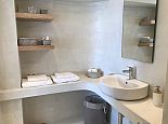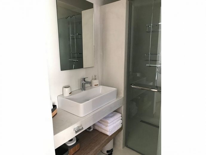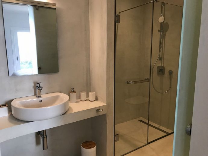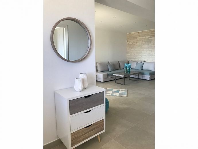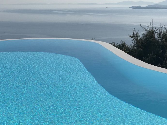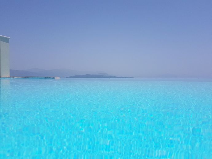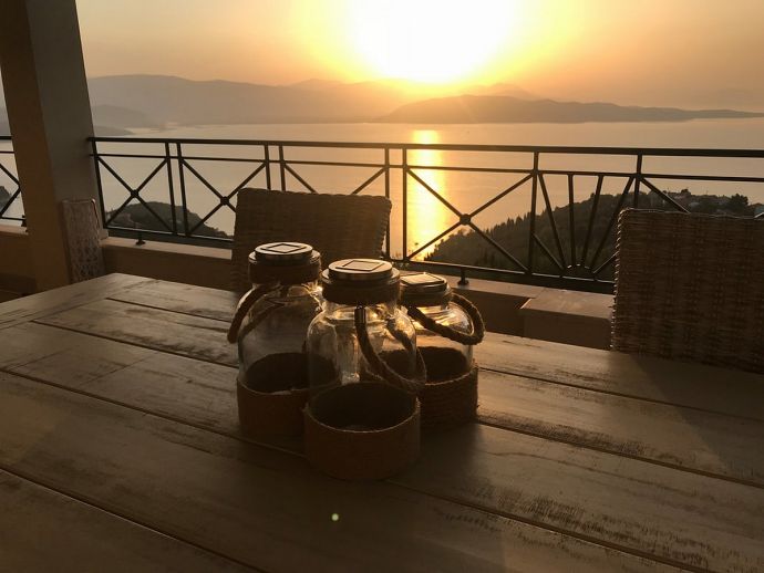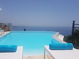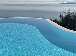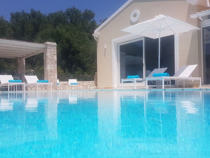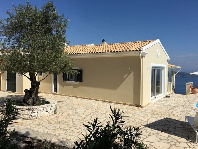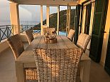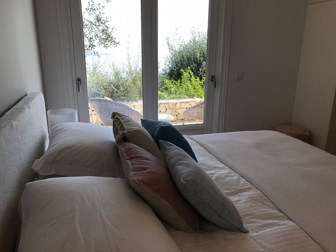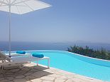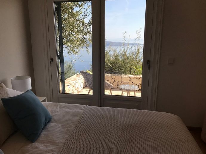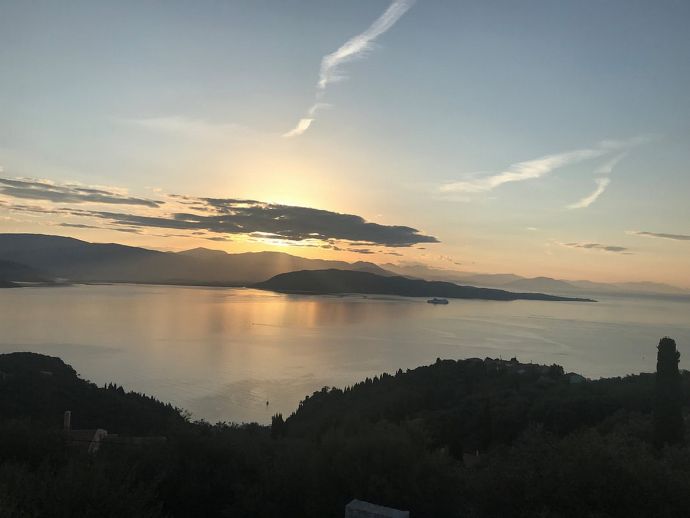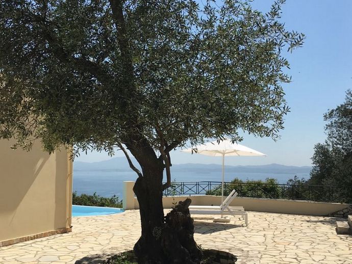 Greta Villa is a stunning holiday home with a 180 degree sea view along the coastline and across the bay to Corfu Town. It has just undergone a full renovation, resulting in a stylish and contemporary property with numerous windows (mosquito nets to all) giving it a bright and airy feel. The theme is very much ‘Boutique Hotel’, the three bedrooms each have their own super high quality en-suite bathrooms, it is air conditioned, WiFi is available (inside/outside) and it also includes a modern ultra-violet water softening system. The large open plan kitchen / dining room has a fabulous sea view and French window with access out to the pool, terrace and balcony. There is a utility room with laundry facilities and the kitchen is fully fitted with electric oven, ceramic hob, overhead extractor fan, dishwasher, large fridge/freezer, coffee machine, espresso machine, a dining table seating 6, kitchen bar for 2, open fireplace and Bluetooth docking station. The living room is spacious with comfortable sofa and chair, coffee table and wall mounted flat screen TV (satellite TV with a wide variety of international channels) and there is a French window to private patio. Outside has plenty of sunbathing areas to enjoy the all day sunshine and the views from the infinity pool and dining area are simply mesmerising. Boasting lots of high specification modern features and spectacular views overlooking the picturesque bay of Agni below, down the coast and over to Corfu’s historical capital, Greta Villa will not disappoint and is guaranteed to surpass your expectations.