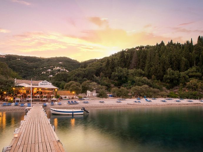 Kentroma is a small village in the north-eastern part of the island, built in a verdant landscape and with a wonderful view of the sea, Kalami beach and the mountain tops of Albania. Kentroma with its few inhabitants is situated on the road which leads from the city of Corfu to Kassiopi and very close to the village are some of the most beautiful beaches of the island. The pebble beaches, such as Kalami, Krouzeriand Nissaki are fully organised with water sports on offer (water-skiing, canoe and pedalos) and many traditional taverns by the sea.