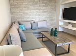 Plenty of sunbathing areas with sun beds, small tables and parasols.