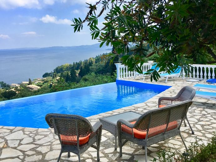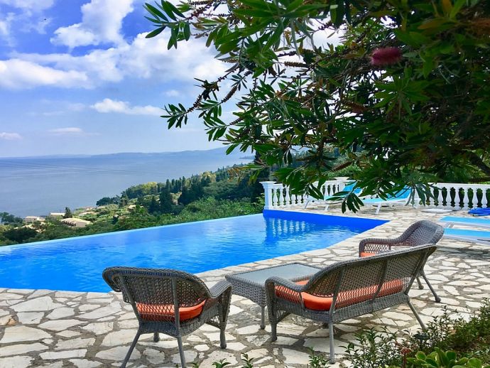 A lovely villa, offering a part modern/part traditional interior, with fantastic outside space and stunning views looking out over the Straits of Corfu.
