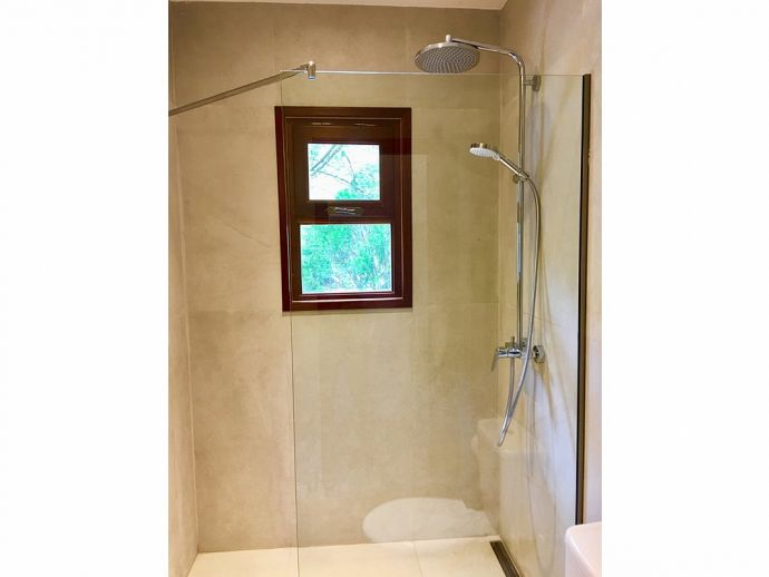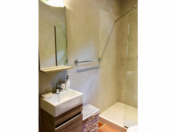 Bathroom: Shower room with large walk in shower, sink and w/c.