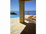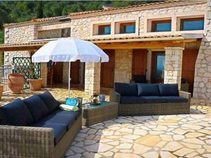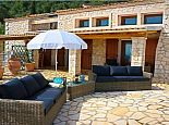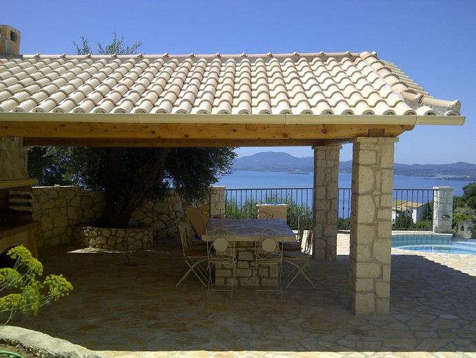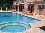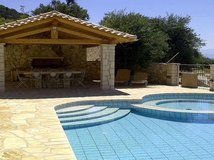 Villa Lykaios was originally an old olive press that has been restored by the finest of craftsmen using local materials, it's nestled in the hills above the sleepy hamlet of Nissaki providing quality accommodation and stunning sea views. The design and the overall fixtures and fittings will not disappoint and although air conditioned the stone walls create a cool haven to escape the heat of the summer sun. Distributed over a single storey there are 4 bedrooms with en-suite bathrooms, a separate guest bathroom plus a gallery bedroom for 3, maximum occupancy for 11 people. The farmhouse kitchen has been fitted with every electrical appliance/gadget imaginable including a a large American style fridge/freezer, Aga type cooker, microwave, stone pizza oven, dishwasher etc and dining table that seats 10. The lounge has a huge vaulted ceiling with 365 degree gallery, fireplace, Grand Piano, 50" TV with Sky satellite system, DVD (Greek/European) and locally hand crafted wrought iron furniture plus a stone staircase that leads up to the gallery area. The whole property is private, secure and walled and accessed via electric gates to private gardens with flowering shrubs, fruit trees and homegrown vegetables. The private swimming pool includes a separate Jacuzzi section and is surrounded by patio areas with sun loungers and parasols, there is also a covered barbecue with kitchen area and stone table for meals outdoors which is perfectly placed for enjoying the spectacular sea views. Absolutely no expense has been spared creating a haven at Villa Lykaios and it's a perfect choice for those looking for a fantastic property in a peaceful location.