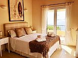 Bedroom 1: King size bed, bedside cabinets, dressing table, fitted wardrobes, dual French doors to balconies and very large terraces with wonderful sea views from the terrace and through the glass doors.