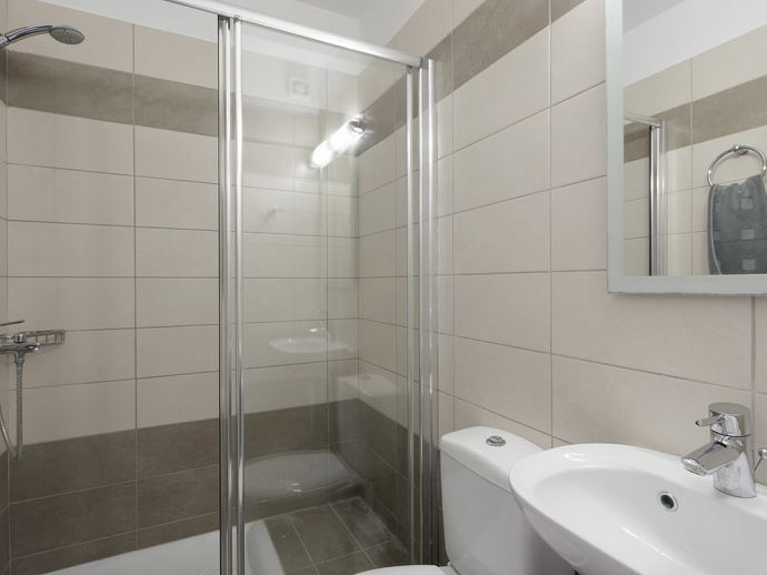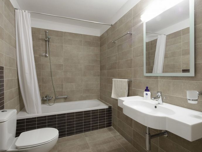 Bathroom 2: bath/shower, contemporary sink, w/c