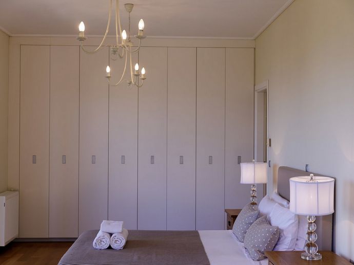 Large Master Bedroom: King-size bed, A/C, fitted wardrobes, small nursery with a cot if required, private bathroom (bath/shower, vanity unit, w/c) and direct access to balconies with sea views.