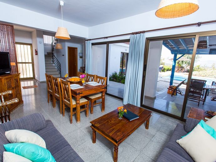 The sea is only a short drive away (5 minutes) and with Paphos forest to the rear you may get a chance to see the endangered “Moufflon” at Stavros tis Psokas or to hike down the nature trails.