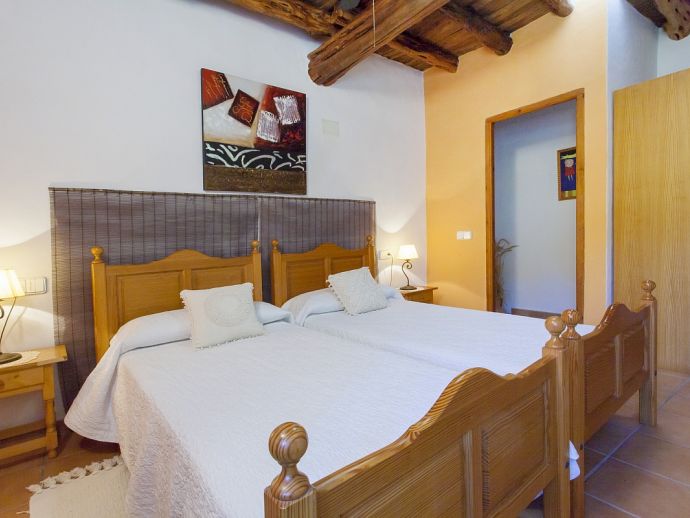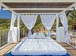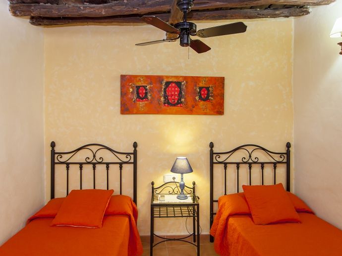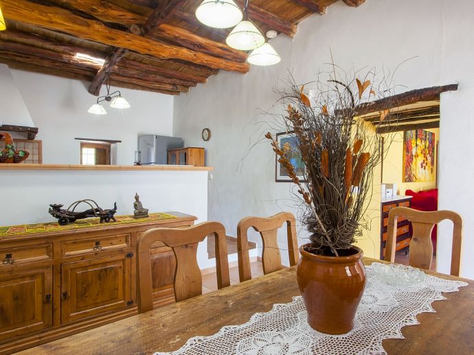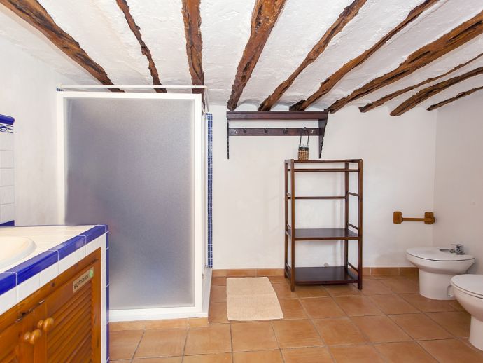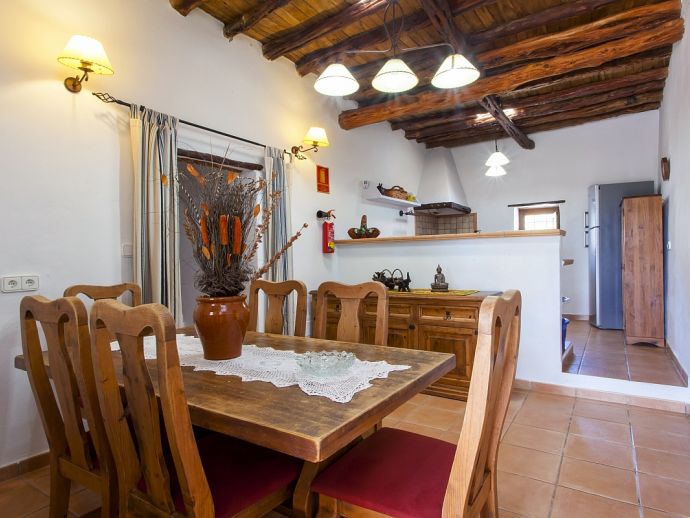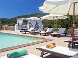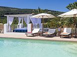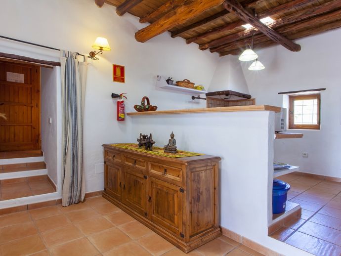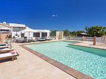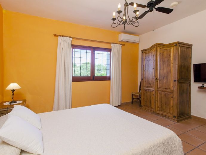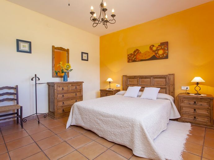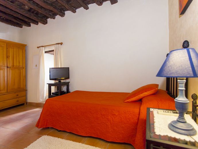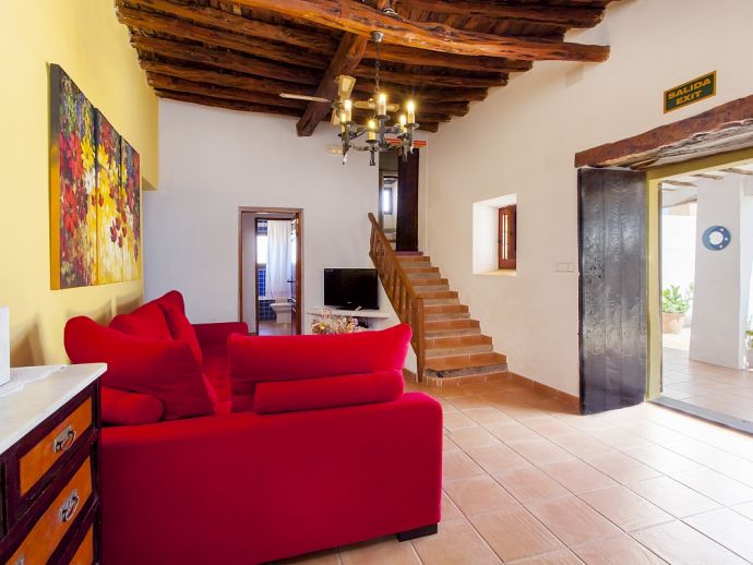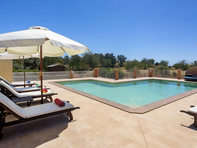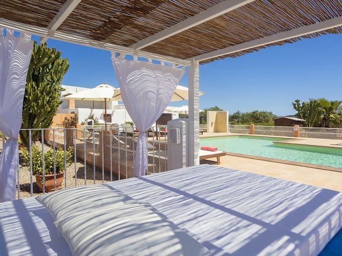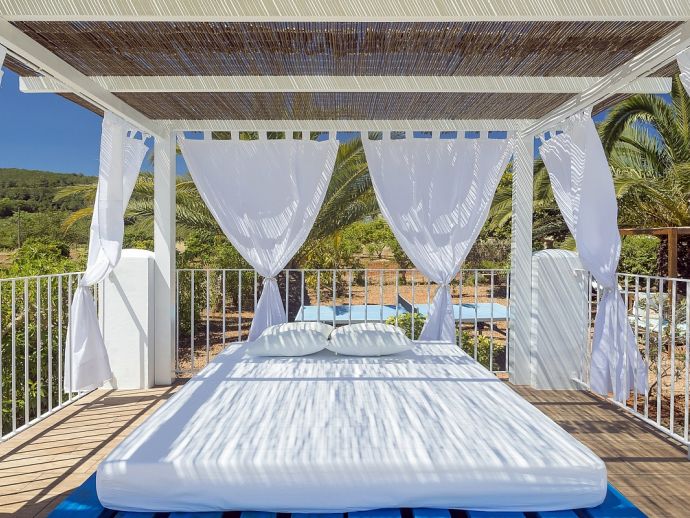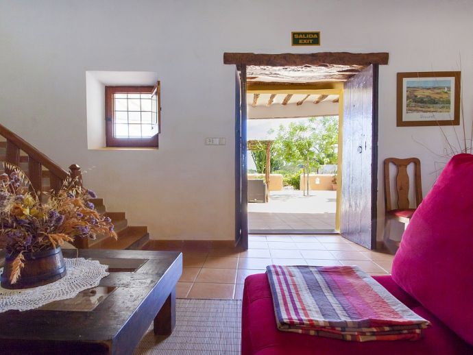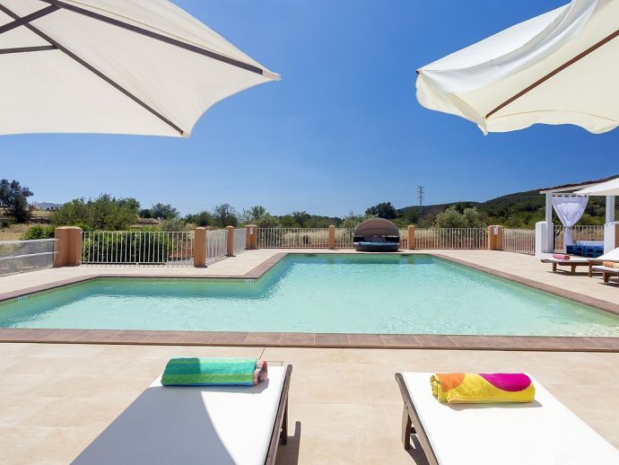 Villa Amelia is a lovely traditional house in a quiet countryside location just 2.5 km from the beautiful town and beach resort of Santa Eulalia. It has been recently restored with careful thought selecting furniture throughout, in a rustic style and exquisite taste ensuring that it matches with the typical ibicencan architecture. Distributed over two floors the house sleeps 8 in comfortable air conditioned accommodation, on the first floor is a twin bedroom and a covered terrace with views to the countryside and sea. Three further bedrooms with en-suite bathrooms (2 doubles /1 twin) are located on the ground floor and accessed from the large lounge along with a complete kitchen and separate dining room, there is also WiFi, air conditioning, heating, a plasma TV in all rooms, satellite TV, a safe, I-phone dock station and alarm system. Outside is patio area including porch which is full of beautiful potted plants, from here there is access to a shower room complete with washing machine. Villa Amelia sits on a large plot with a fenced private swimming pool, sun terrace equipped with loungers and "Bali" bed for relaxation, table tennis and a pool table for entertainment and a built-in barbecue with dining furniture for enjoying meals al fresco.