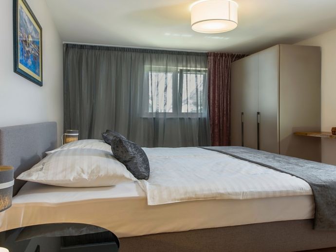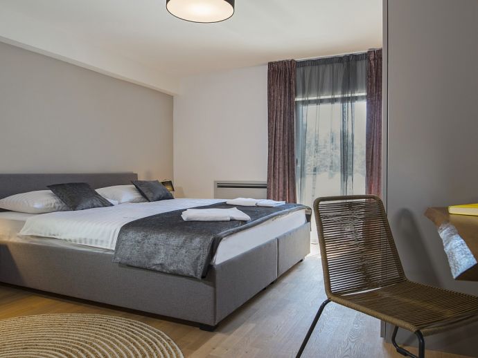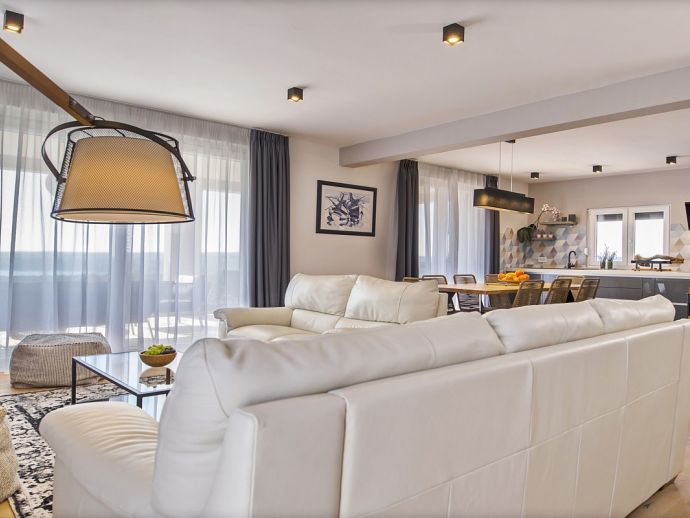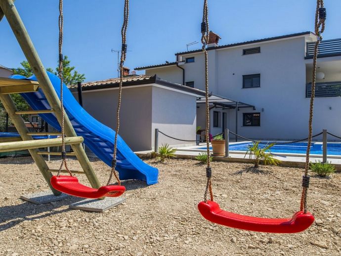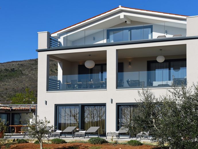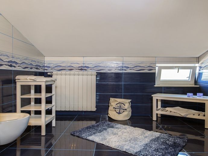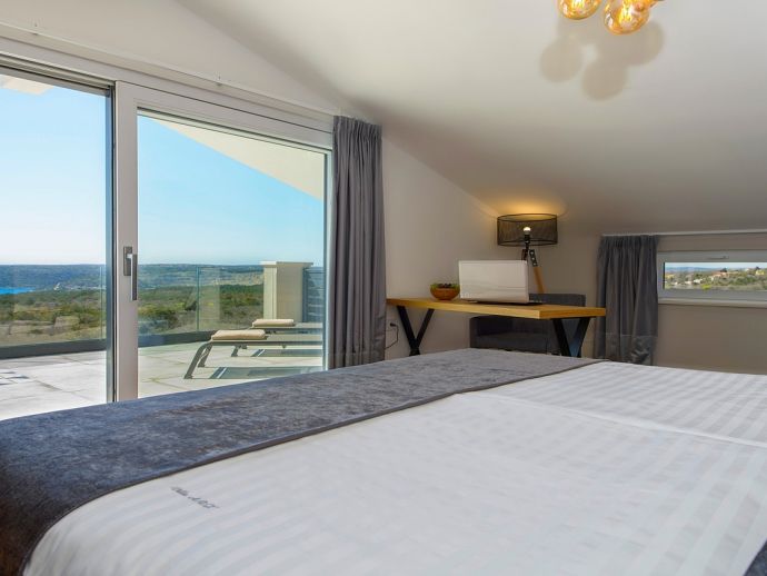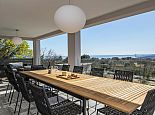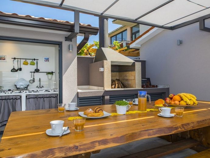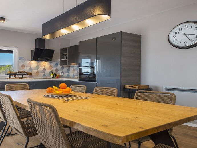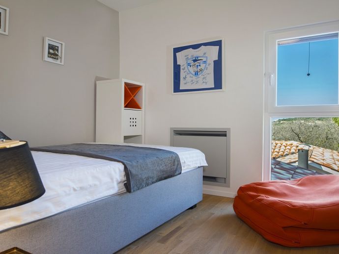 Villa Zana is a newly built modern property situated on the eastern coast of Istria with magnificent sea views which will make you fall in love with the Mediterranean sunsets that can be enjoyed from the balconies and terraces. The luxury and sleek interior provides a comfortable atmosphere to accommodate 9 guests, with 5 bedrooms and 5 bathrooms including a master suite on the top floor with a large terrace and panoramic sea views. There are 2 bedrooms and 2 bathrooms on the first floor and the main open plan living area with lounge, dining table, a fully equipped connected kitchen and patio doors to an attractive furnished terrace also with fantastic sea views. The ground floor houses to 2 more en-suite bedrooms, utility room, guest toilet plus spaces designed for pampering, light exercise and fun. A games room with a pool table and darts, a fitness room and a well-being room with a Finnish sauna and Jacuzzi which opens out to the private swimming pool, terrace with outdoor kitchen, dining and barbecue area. The enclosed garden includes a children's play area and table tennis making Villa Zana ideal for families or groups and a perfect place to spend your holidays in peaceful, relaxing and beautiful surroundings.