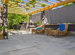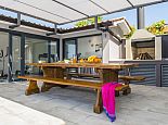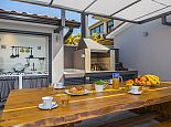 Summer kitchen (4 electric rings, sink), barbecue and dining area.