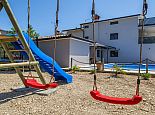 Garden with children's play area (swings/trampoline)