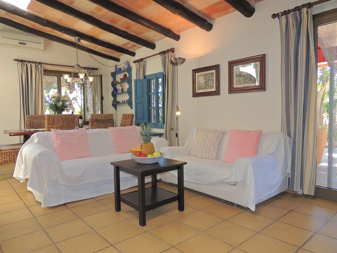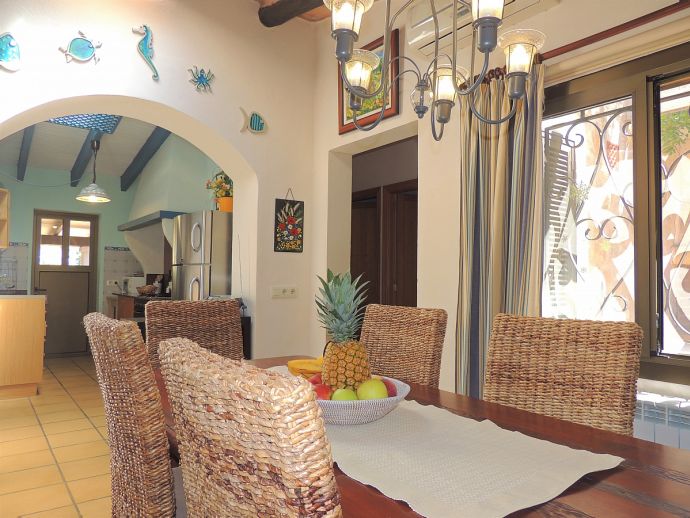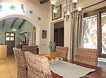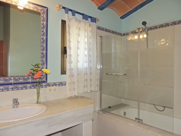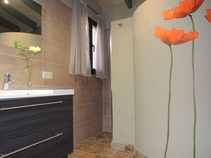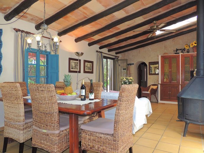 Casa Jazmin is situated in an ideal position with beaches, restaurants, bars, cafes and shops of Cala Figuera, Santanyí and Cala Santanyí, less than 5 minutes away by car. This typical Mallorcan holiday home has a rustic and cosy style and is fully equipped with air conditioning, central heating, WiFi and satellite TV (Languages: Spanish, English, German). Distributed over one floor there are 3 bedrooms, 3 bathrooms (one en-suite), an open plan living space with fireplace, a dining area and a gas kitchen with appliances (fridge/freezer, washing machine, iron, dishwasher, oven, microwave, coffee machine, toaster, kettle, dishes/cutlery, kitchen utensils). The house enjoys views to the mountains and to the enchanting fenced garden with spaces shaded by palm trees, a private swimming pool, several areas for sunbathing, a stone-built barbecue and a covered terrace for enjoying meals al fresco with family or friends.