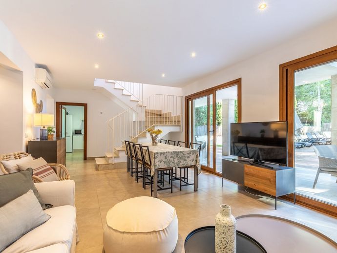 We stayed in Mallorca for a week in April 2023. The house is as described, great and very quiet location. Despite this, Alcudia is a five-minute drive away and the beach is a three-minute walk away. The very good equipment of the house is commendable, nothing was missing. Everything is very clean and well maintained. The beautiful garden as well as the pool were completely cleaned during our stay. Was delighted with the welcome pack of some local goodies. Contact with property management was perfect. Upon request, we received the requested information within a few minutes.
