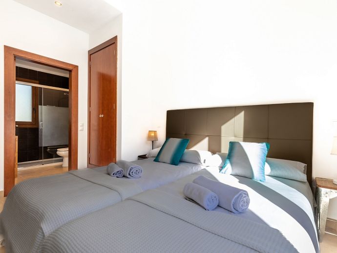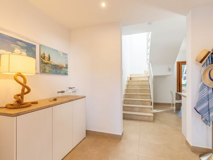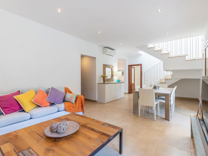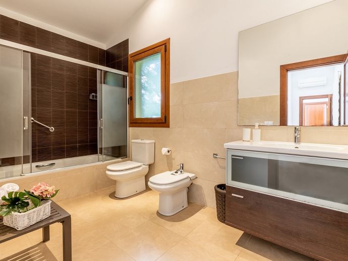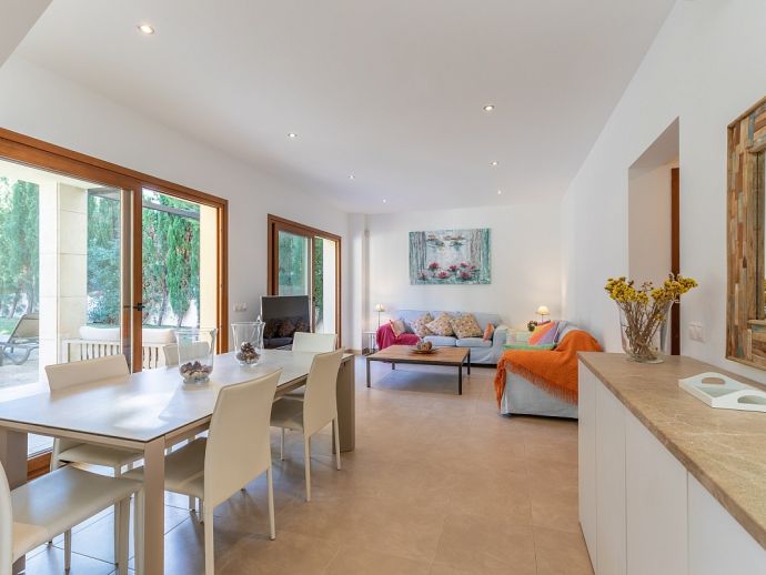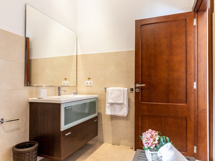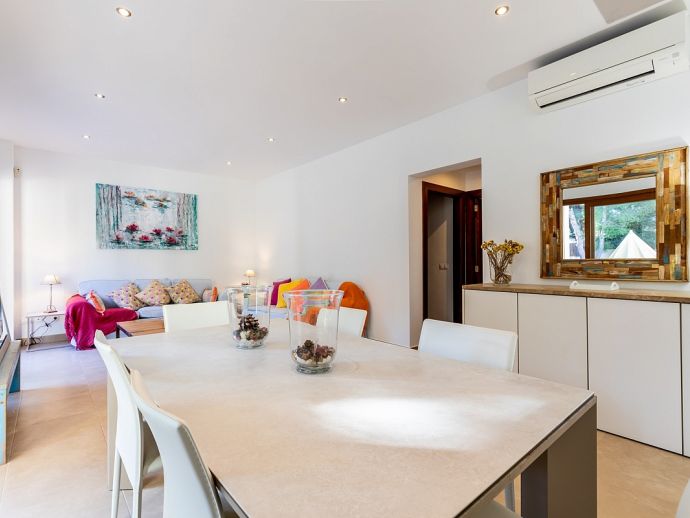 Bedrooms: 4 Sleeps: 8Situated in a family friendly neighbourhood and just a 5 minutes stroll to two beautiful little coves with sand beaches and a 10/15 minute walk to the centre of Mal Pas and to the town of Bonaire with its walled marina and scattering of restaurants overlooking the boats where you can enjoy an evening meal without having to drive. The beaches in the affluent little Alcudia suburb of Mal Pas are quiet and usually only used by the locals of the area, the beaches of deep white sand and turquoise waters are small but have all the amenities you’ll need for a day on the beach, each has a life guard station, toilets, beach shower, snack bar, sun loungers and parasols and look out over the Pollenca Bay towards Cap de Formentor. For a wider choice, the shops, restaurants and atmospheric old streets of Alcudia are just five minutes in the car and a real treasure on the island, a perfectly restored medieval walled city on the site of a Roman settlement with remains of ancient houses and a theatre, with a wealth of history and charm this town offers visitors an authentic Mallorcan experience. The weekly market in the old town is considered one of the most important on the island due to its atmosphere and wide variety of products on offer and there are plenty of cafes where you can sit on the terrace and enjoy a drink and Alcudia also specialises in restaurants serving traditional Mallorcan food.