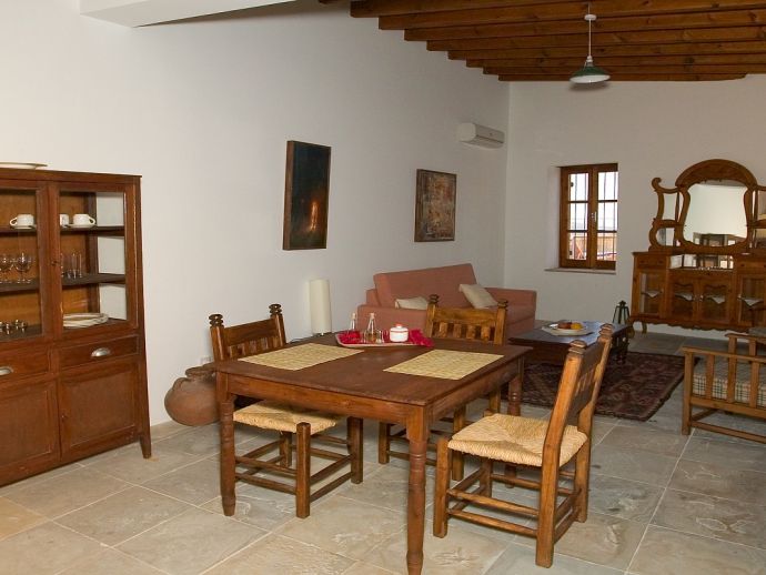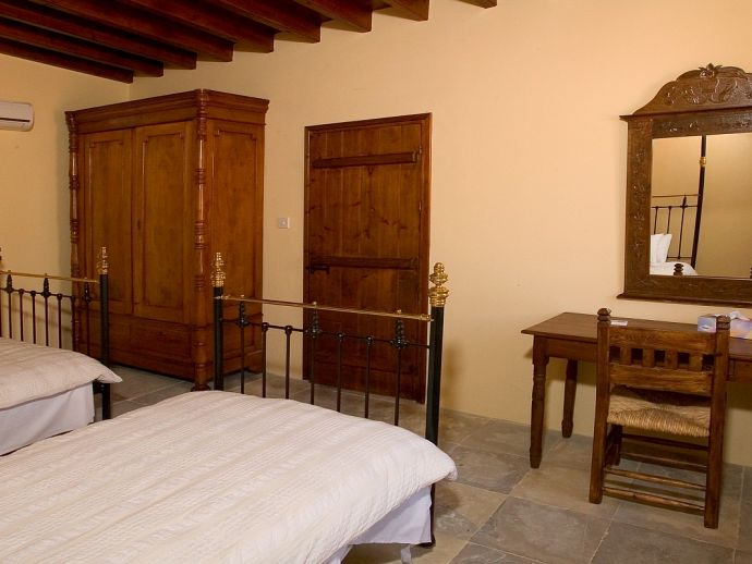 Ektoras apartment is one of four fully serviced self contained apartments in a beautiful country house which is located in the hillside village of Choirokoitia. The two-storey stone-built property with its traditional architecture, décor and blossoming greenery revives the spirit and atmosphere of bygone days. Modern amenities are delicately woven into a tranquil setting and designed to be an escape from the outside world. A one bedroom first floor apartment that sleeps 2/3 guests with a sofa bed in the living room to accommodate a third person, a modern bathroom with shower, kitchen and a balcony plus air conditioning (heating/cooling), WiFi, electric hob/oven, fridge, kettle, toaster, coffee machine, villeroy boch china ware, hairdryer and a safe. The apartments surround and overlook the private courtyard with a shared swimming pool and a spacious sunbathing deck for relaxing whilst enjoying the Cyprus sun!