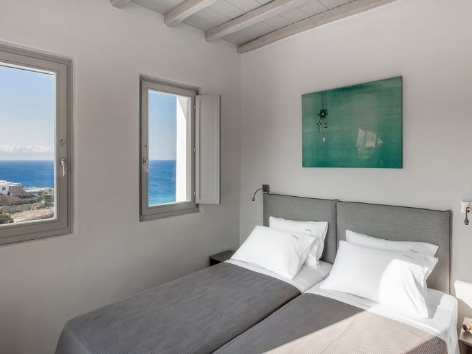 Bedroom: twin beds, en-suite bathroom, sea view.