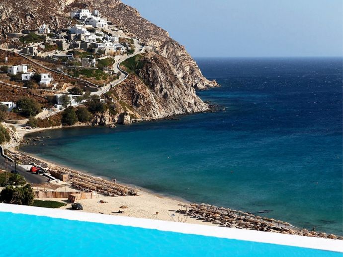 Mykonos town is just a short drive from Elia or easily reached through a regular bus service or via boat.