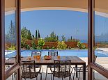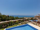 This spectacular five bedroom superior villa with private infinity pool (can be heated at extra charge) has been designed to take full advantage of the panoramic view of the sparkling Mediterranean Sea. Located at the edge of a new, prestigious development where luxury and attention to detail are paramount. Luxury blends with elegance and practicality in this modernly furnished villa with comfortable furnishings, soft fabrics and subtle earthen colour tones the sense of luxury is evident throughout.