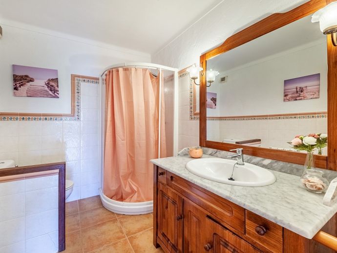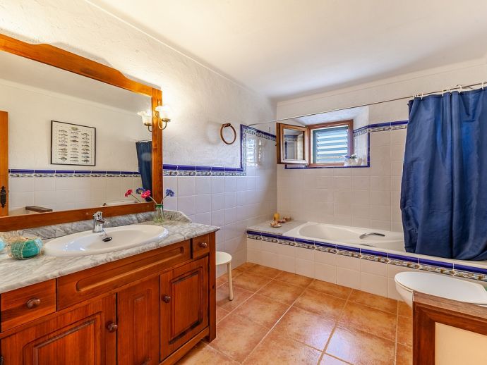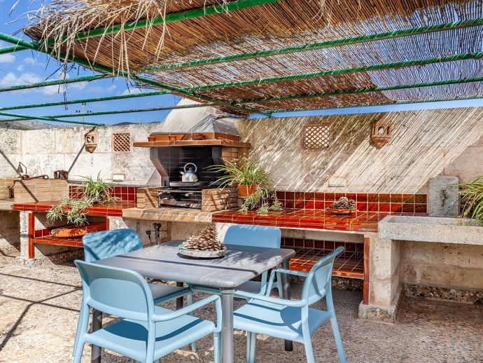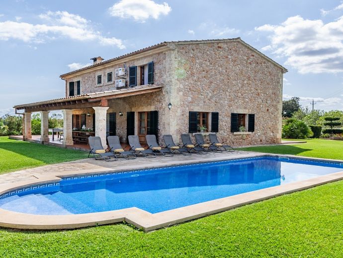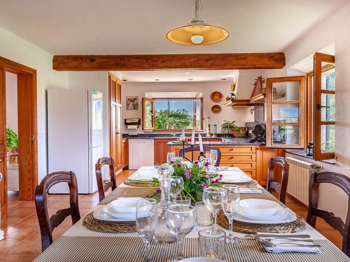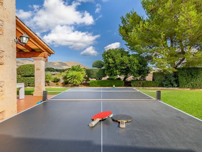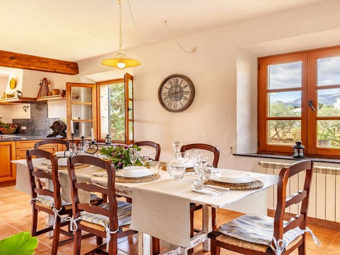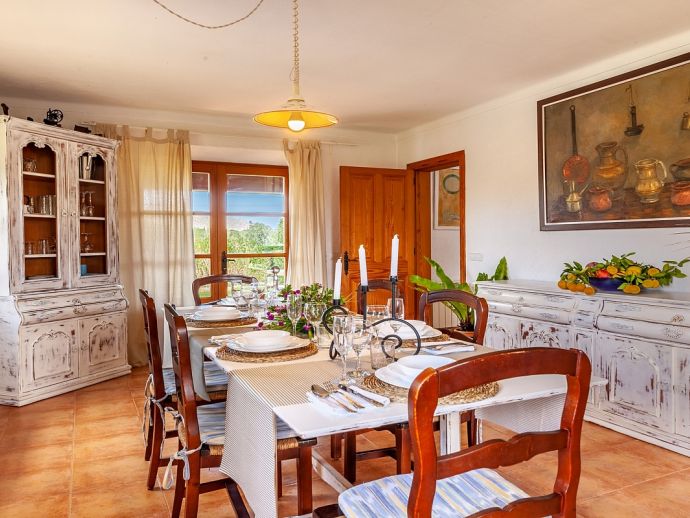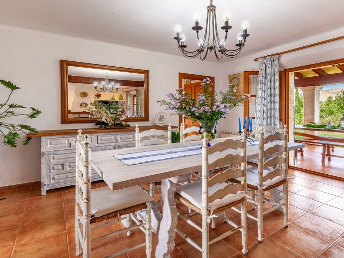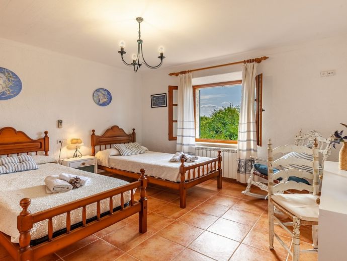 Finca Paulina nestles in a peaceful countryside setting whilst being ideally located between the two fabulous resorts of Pollensa and Port de Pollensa at just a 5 minutes drive. This traditional stone-built villa is distributed over 2 floors and sleeps 8 guests in tastefully furnished and spacious interiors. There are 5 air-conditioned bedrooms (the single bedroom is only suitable for a person under 16 years old), a grand entrance hall, a fully equipped kitchen with a separate dining area and a comfortable living room with a fireplace, satellite TV and a second dining area that opens out to a 30 m² covered terrace. The villa sits on a 7000 m² plot, planted with trees, shrubs and a large lawn and includes a private swimming pool with Roman steps, sun loungers and an outdoor kitchen area with a built-in barbecue. Finca Paulina is the perfect choice for families seeking a private retreat with lovely countryside views yet being just a short drive to ancient towns, restaurants, sandy beaches, water sports and a golf course!