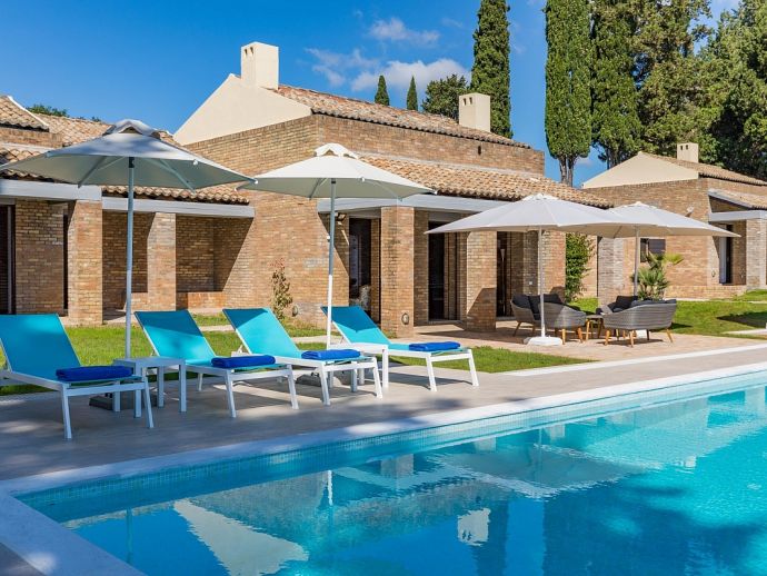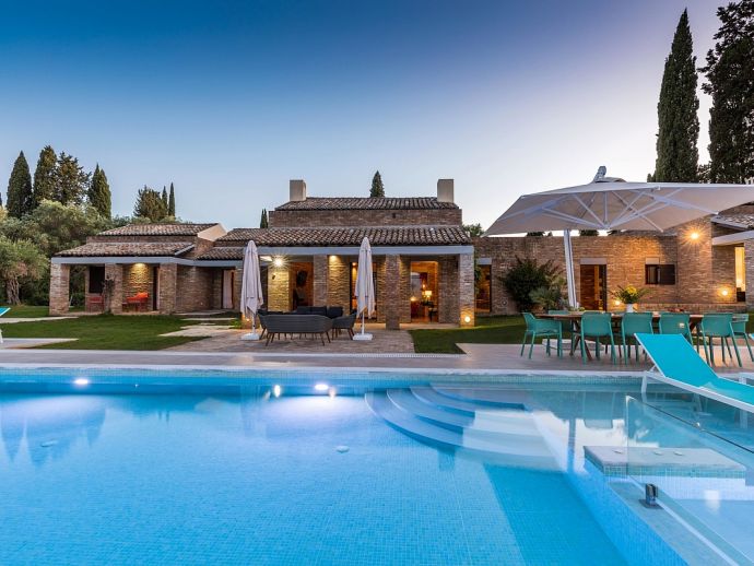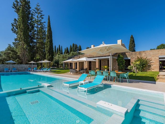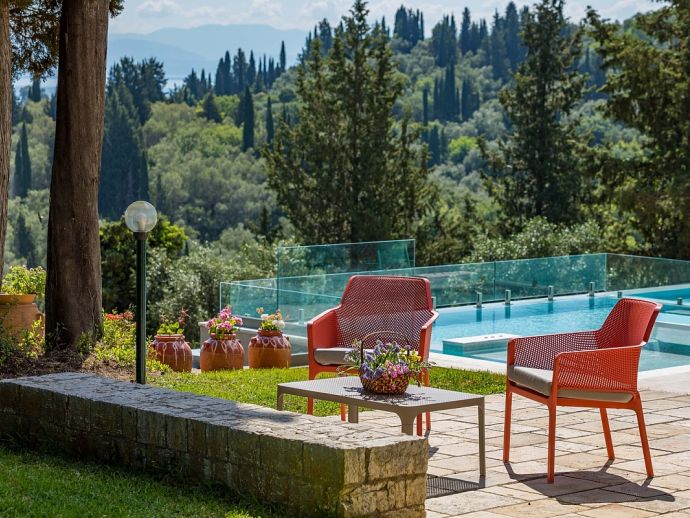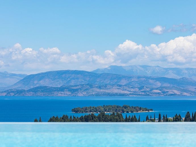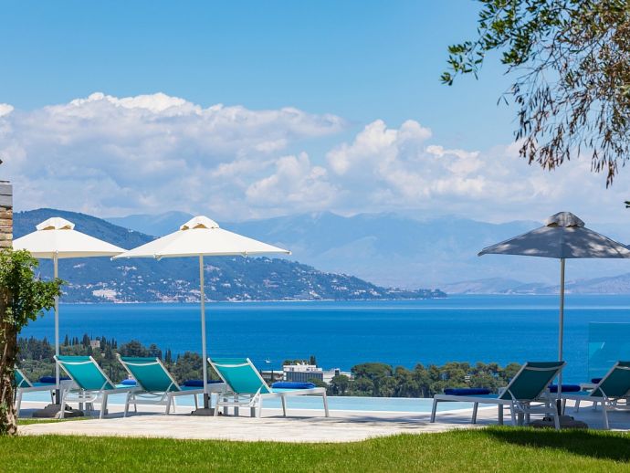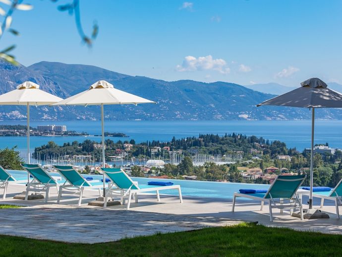 Bedrooms: 4 Sleeps: 8Villa Aurore is situated within an exclusive 2 acre private estate, in a quiet, peaceful location amidst beautifully manicured gardens and enjoys stunning views over Gouvia Marina, Peninsula and the North East coastline. It is less than 10 minutes drive from the family resort of Gouvia with easy access to the beach and a good choice of restaurants. Once a former small fishing village it is now the main marina of Corfu welcoming many yachts from all over Europe and a modern holiday resort. It is ideal for couples and families, the local people are friendly and eager to show visitors the way of the Greek hospitality, it has a good selection of bars, restaurants and a lively atmosphere at night. There are several beaches of sand, shingle and pebbles and tiny coves, swimming is safe for children and access to the beach is easy from anywhere in the village and activities include paragliding, diving and most water sports. The historical centre of Corfu Town is just a twenty minute drive so a perfect location to enjoy the magic of Corfu Island.