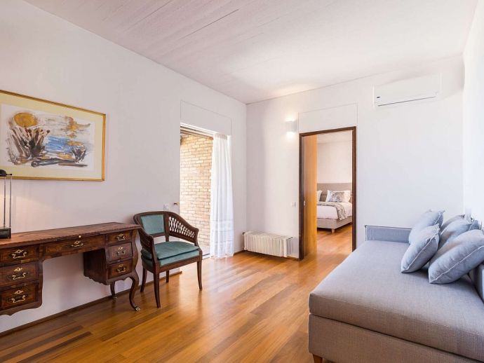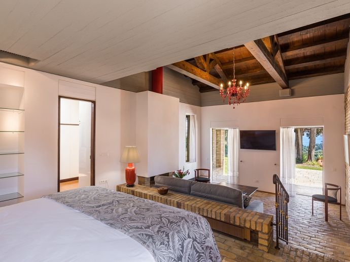 Bedroom 1 - Master Suite: Sea view, one King size bed and one Queen size Sofa Bed, walk-in wardrobe, A/C, adjacent living area, en-suite bathroom. **Sleeps 3 Adults OR 2 Adults and 2 Children**