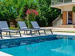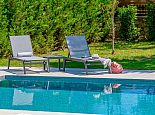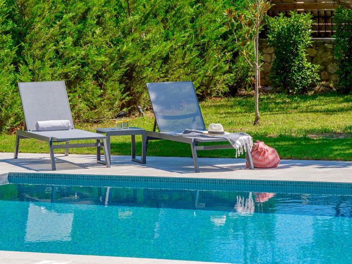 Private swimming pool (8 x 5 meters - depth 1.4 m) which is lit at night. Parasols and comfortable sun loungers.