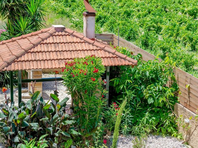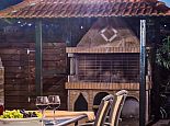 Covered dining area (table for 10 guests) with built-in barbecue.