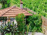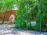 Fenced plot - 2000 m² of mature trees, shrubs, flowers, paved terraces and gardens with lawn.